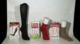 立ち仕事の多い看護師のニーズを元に開発した「むくみ対策くつ下」は、疲れ・むくみの軽減・ストレス対策に効果がある機能性靴下です。履くだけで足先があがる足趾伸展機能によって自然と足関節の背屈がもたらされ、第2の心臓と言われるふくらはぎとすねの筋肉が活発に動き、血行やリンパの流れがよくなり、むくみ対策効果が得られるというもの。広島県立大学、広島県立安芸津病院と産学官連携で6年間の研究開発を重ね誕生しました。