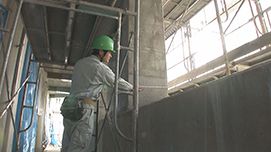 大規模修繕などは、まず、建物の調査・診断を行います。この時、大切なのは、不具合を見つけるだけでなく、 「その不具合がどこからきているのか」という原因を解明することだと言います。 この考えのもと行う調査・診断を、奥河内社長は「建築医学」と言います。打診によりタイルの浮きを調べ、その他、 シーリングや防水シートの劣化、コンクリートのひび割れなどを細かく調査し、そのような不具合の原因を解明し、施工へと移ります。 株式会社テクシードは、これらの作業を一貫して行うことができます。